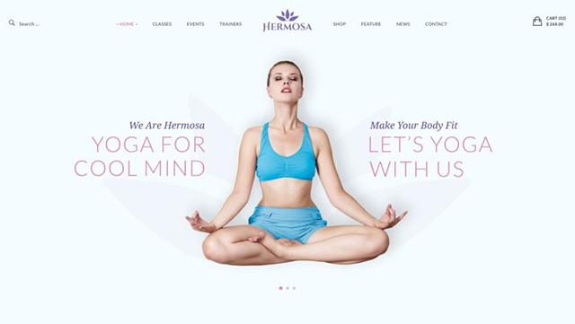 另一個(gè)很好的體育網(wǎng)站的例子是YYoga。本網(wǎng)站設(shè)計(jì)具有舒緩和鎮(zhèn)靜作用。主要使用的顏色是淺綠色和白色,作為背景使用。
