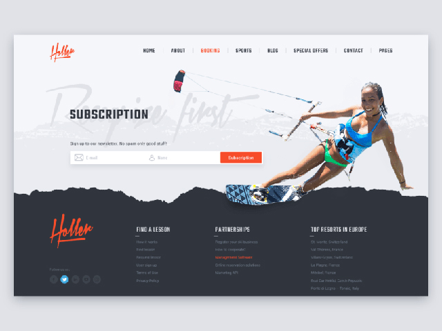 如預(yù)期的那樣,將使用大型滑動(dòng)圖像。在瀏覽網(wǎng)站的顧客中,深色也代表了一種充滿(mǎn)活力和激情的情緒。模型被放置在CTA上面的中心,這是一個(gè)吸引客戶(hù)并鼓勵(lì)他們采取期望行動(dòng)的偉大舉動(dòng)。