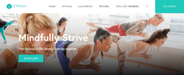 這個(gè)設(shè)計(jì)很容易導(dǎo)航,所以客戶(hù)不會(huì)很難找到信息。CTA按鈕被放在網(wǎng)站的第一頁(yè),鼓勵(lì)顧客加入YYoga。這個(gè)按鈕是綠色的,字體是白色的,很容易被漏掉。