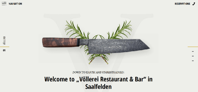 Vollerei網(wǎng)站是一個設(shè)計良好的網(wǎng)站。它在布局中以白色為主色。如果你看這個網(wǎng)站,你會立即被這些圖片吸引。通過展示他們提供的食物的清晰圖片,顧客會希望盡快拜訪他們。這個網(wǎng)站也使用視頻,以確保訪客絕對專注于他們的產(chǎn)品。它還能讓游客在線預(yù)訂。