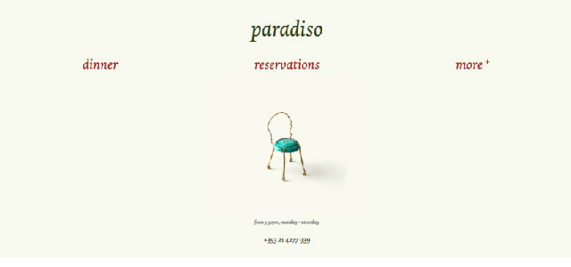 在這個網(wǎng)站上你會注意到的第一件事就是驚人的攝影。它還包括非常簡單的導(dǎo)航,所有重要的按鈕都放在首頁的頂部。當(dāng)你開始向下滾動時,你會注意到餐廳的簡短描述。整體導(dǎo)航是極簡主義的,而且效果很好。白色是主要的顏色,它對其他的內(nèi)容有很大的影響。